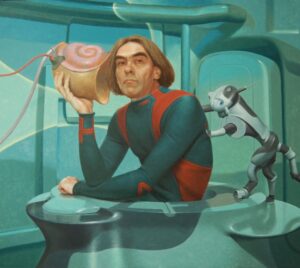В преддверии дня космонавтики мы погрузимся в атмосферу космореализма – самого узнаваемого направления автора, посмотрим мультфильм созданный Александром, а также познакомимся с архивом эскизов и наработок к его произведениям.